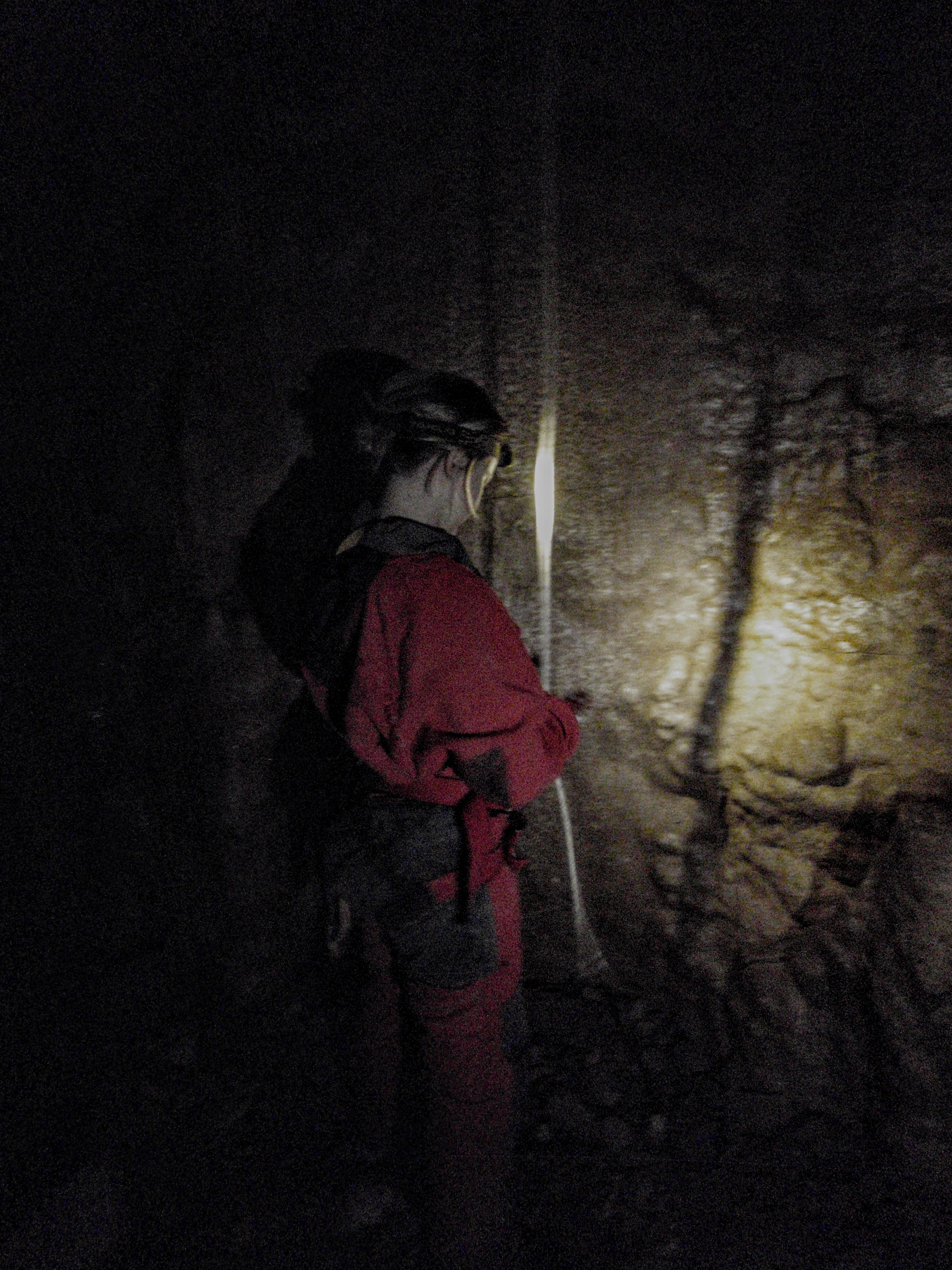 Une marche lente nous ramène en même pas 10 minutes au pied du puits de 20 mètres. Alex par en haut pour assurer la sortie en tête de puits et c’est Thibault et Leila qui enchaînent la remontée. L’éclairage de Leïla fort de ses 2 watts nous rappelle toujours la qualité des équipements chinois 😉