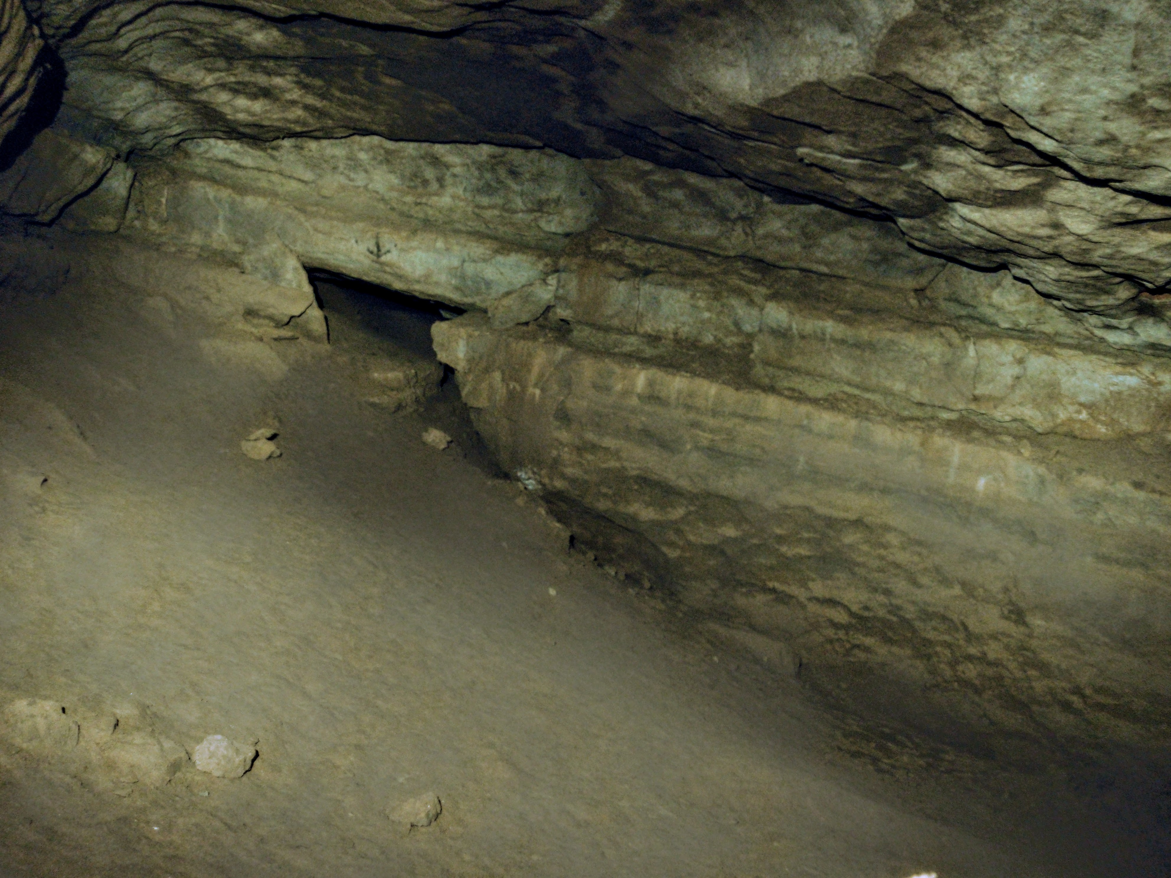 Lorsque une énorme salle s’ouvre à ma droite, je ne résiste pas au plaisir de faire un ou deux toboggans sur ces grandes pentes d’argile. en savourant jusqu’au bout de mes ongles ma reprise de la spéléo avec du matos. Mais au bout de la deuxième remontée, je constate un essoufflement certain, il y a toujours du CO2, mais ce n’est pas dramatique. Je continue mon exploration de manière très lente afin de récupérer et d’attendre mes coéquipiers. Ces derniers me rejoignent, en validant la présence de gaz. On décide de se poser en haut de cette butte d’argile pour la pause casse-croûte.